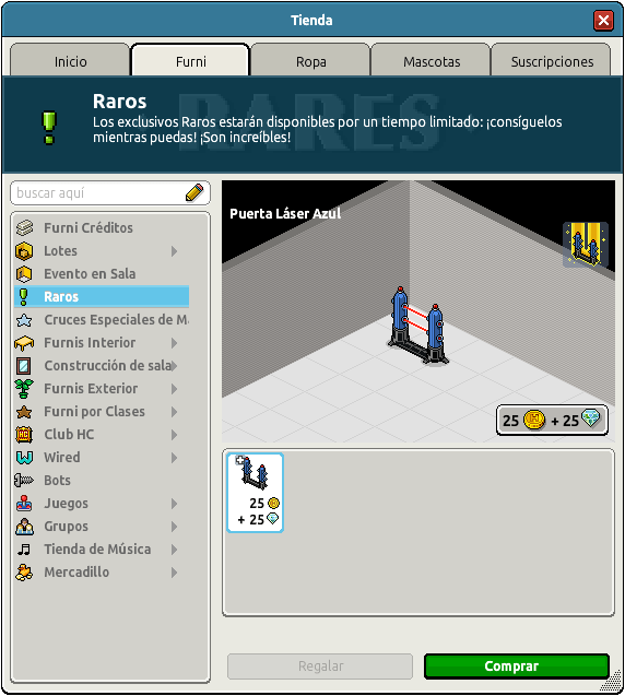 Este raro se llama Puerta láser azul. Si te falta esta puerta en tu colección ¡ahora es tu oportunidad! ¿Te lo vas a perder? Podrás adquirir este raro por el precio de 25