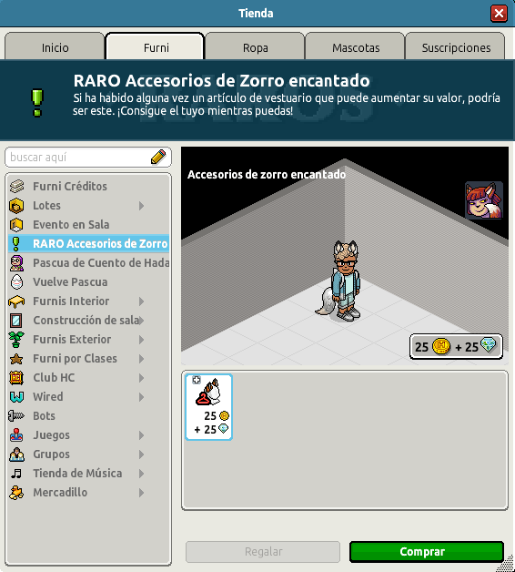 Estamos hablando del RARO Complementos de Zorro Encantado, si alguna vez hubo un artículo de vestuario raro que podría aumentar su valor, este podría ser. ¡Consigue los tuyos mientras puedas! Este raro está disponible por 25