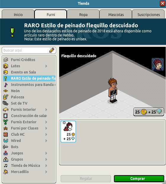 Este raro se llama Flequillo Descuidado y lo podrás adquirir por un precio de 25