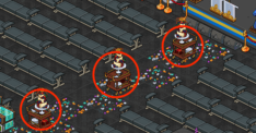 Lo que deberás hacer, una vez dentro de la sala, es darle doble click a alguno de los furnis que te marcamos en la imagen para recibir la insignia.