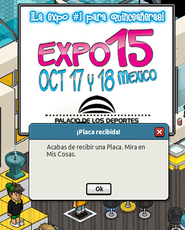 Hoy, habbo a vuelto a poner a la disposición otra placa que puedas ganar, solo debes entrar a esta sala Expo15 y en caso de que cuando entres lo la recibas solo deberás caminar hacia delante.
