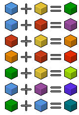 Este cubo irá cambiando, contarás al principio con tres colores rojo, azul y amarillo y a partir de hay deberás a empezar a mezclar los cubos, hasta conseguir el color deseado, pisando las flechas que tienen en frente.