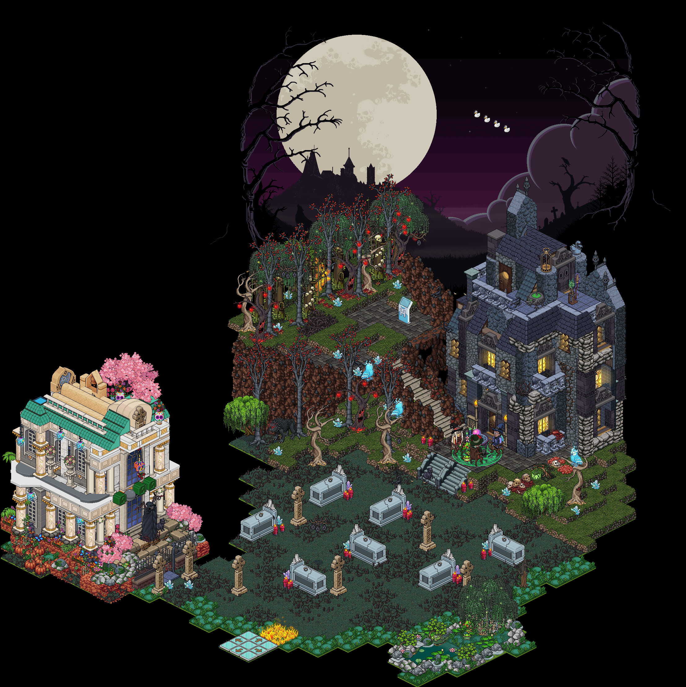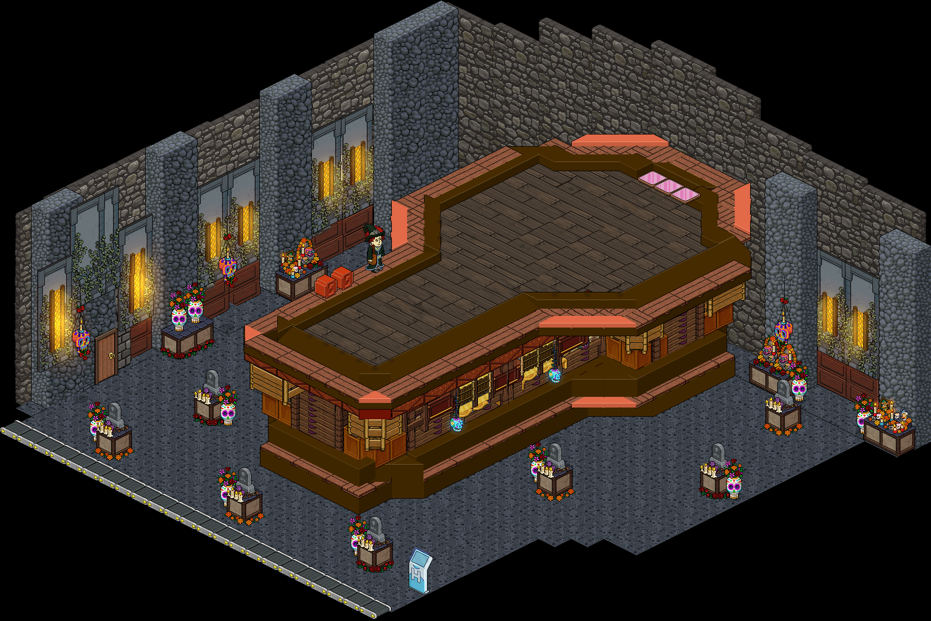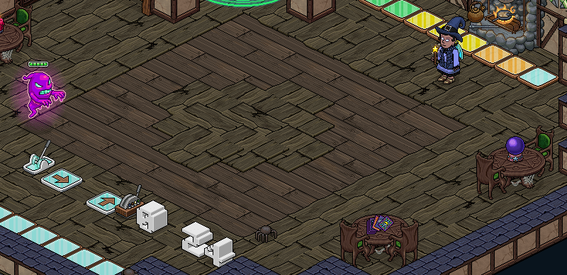 Has atravesado un cementerio de zombies, ahora te toca sobrevivir a unas lápidas embrujadas que se cruzarán en tu camino. En esta ocasión dispondrás de 50 segundos para esquivar las tumbas que se dirigen hacia ti y pisar las casillas color. Si consigues pisarlas tres veces ingresa por el teleport para acceder a la siguiente sala.