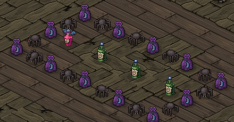 Las brujas te han dejado en lo más profundo del bosque para que recojas todos los blobs. Consigue recoger todos sin que el gato poseído te atrape. Solo dispones de un minuto (1:00) para pisarlos todos. Si has recogido todos accederás a la última sala.