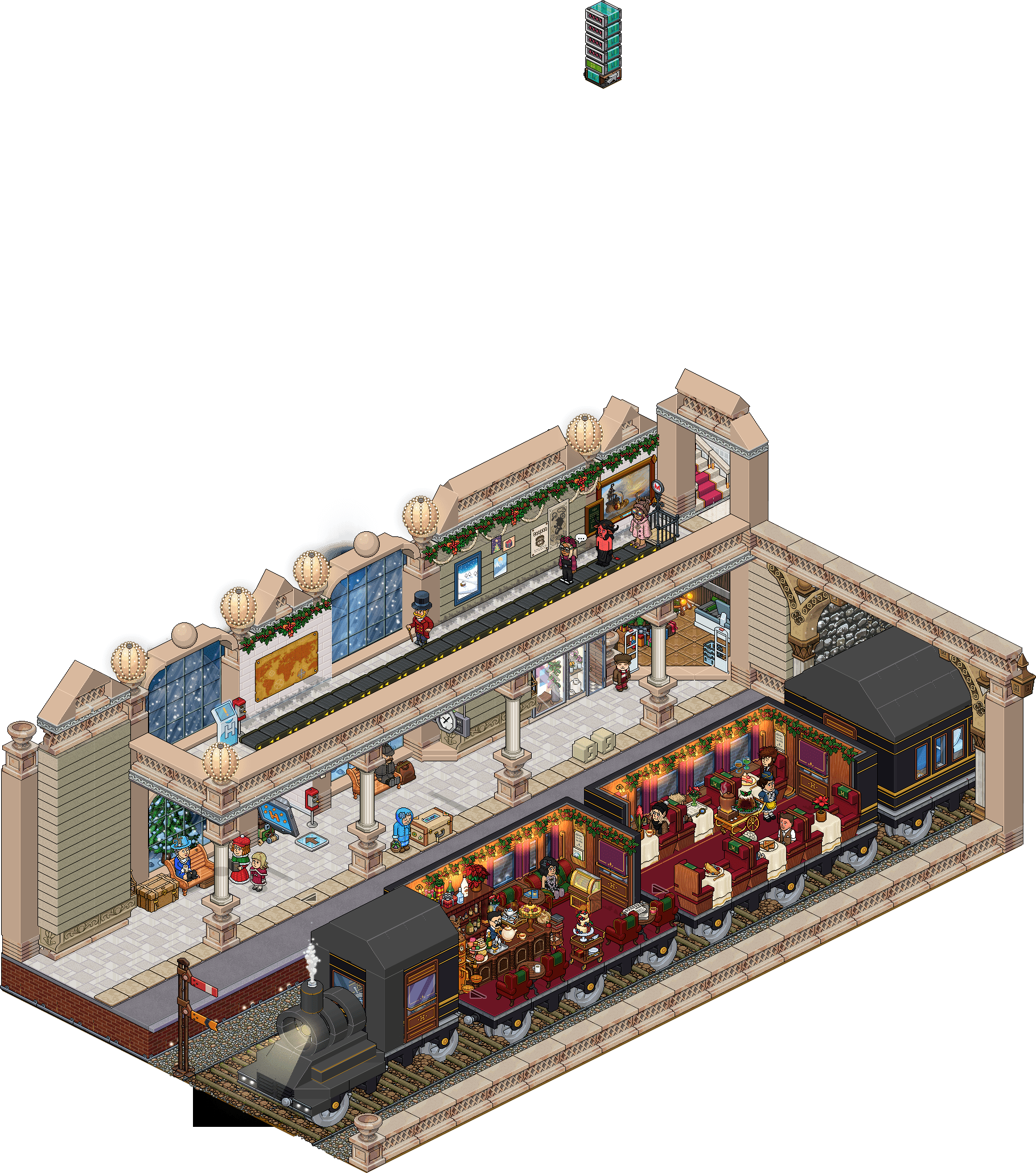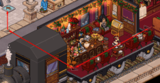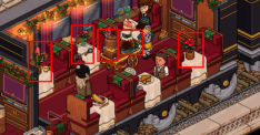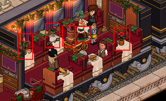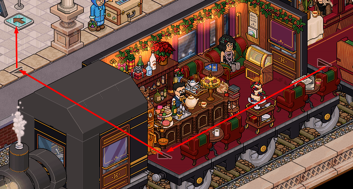 Tendrás que hacer que los pasajeros (bots) se aparten de la salida, haciendo doble con los 5 furnis que te señalamos a continuación (tienes que cliquearlo muchas veces, no solo una vez).