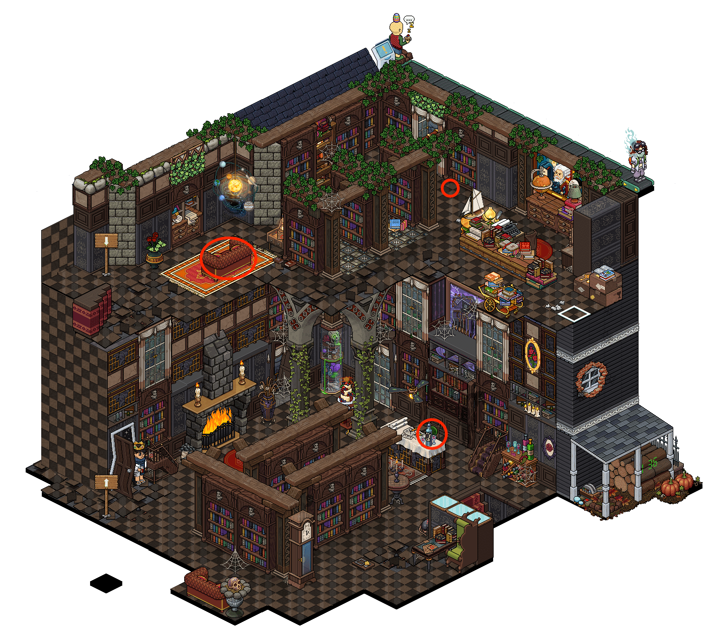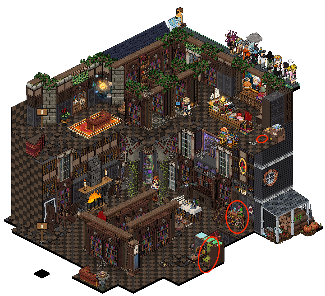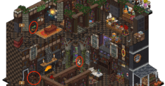 En la primera sala, deberás interactuar con los furnis que tienes alrededor de la sala para desbloquear el pasadizo secreto. Para esto, existirán 3 combinaciones diferentes de furnis con los que desbloquearás las estanterías. Tienes 2 minutos. A continuación te dejamos las combinaciones: