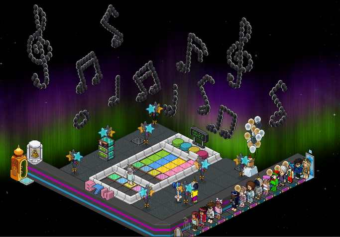 Siguiendo con los juegos de los BaW (Builder At Work) hoy han abierto un nuevo juego con el cual podrás hacerte con una placa si lo superas. Lo primero que deberás hacer es dirigirte a la sala #B7W – Al ritmo de la música que se encuentra en el navegador de salas en Público en la categoría BaW.