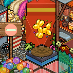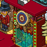 Cuando el último jugador se coloque delante de esta, la disparará a la diana y le explotará un globo a Gafito.