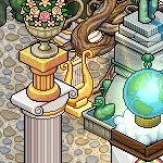 Siéntate en los cuatro Asientos Cardinales (Lectus del Olimpo) y escribe *tocar arpa*.
