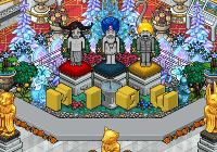En esta misma sala, debes volver a hablar con la Bot Exploradora con las siguientes placas colocadas en tu perfil:
