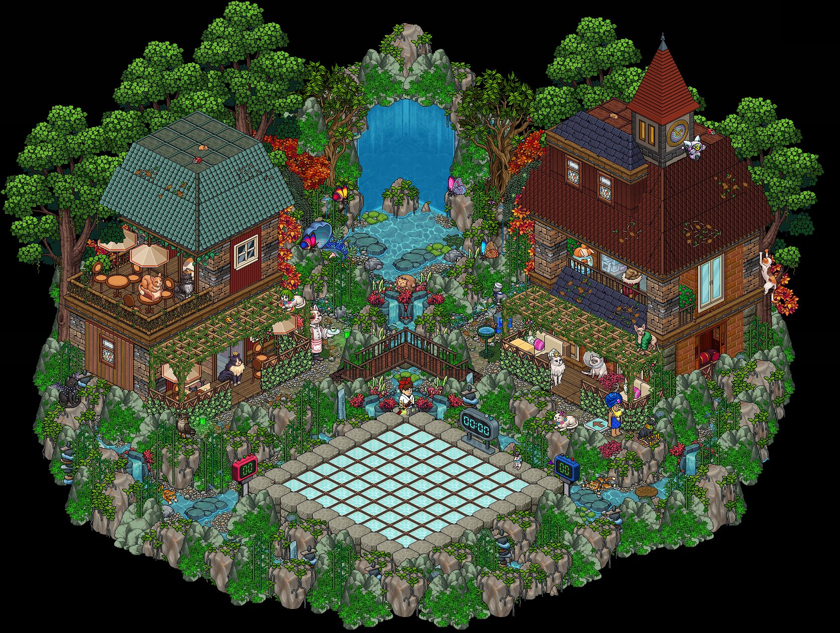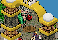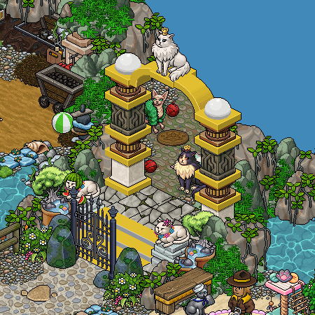 En esta sala, encontrarás la entrada a la Isla de los Gatos, acércate para recibir instrucciones sobre como pasar, tendrás que conseguir la llave que te permita su acceso.