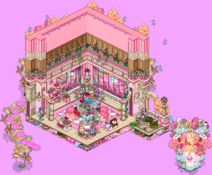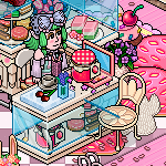 Debes tumbarte en los furnis «Cama de Abrazos Conejito» hasta obtener el ítem de mano «Cupcake«, a medida que te sientes en las Camas, te irá dando una serie de palabras para formar una clave secreta.