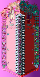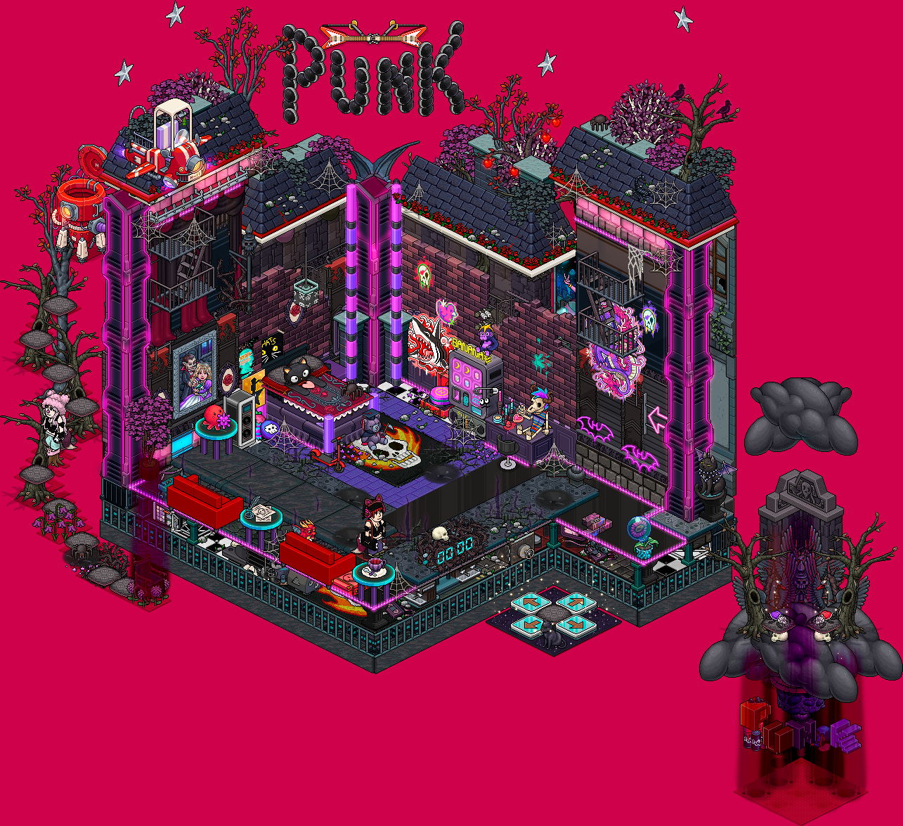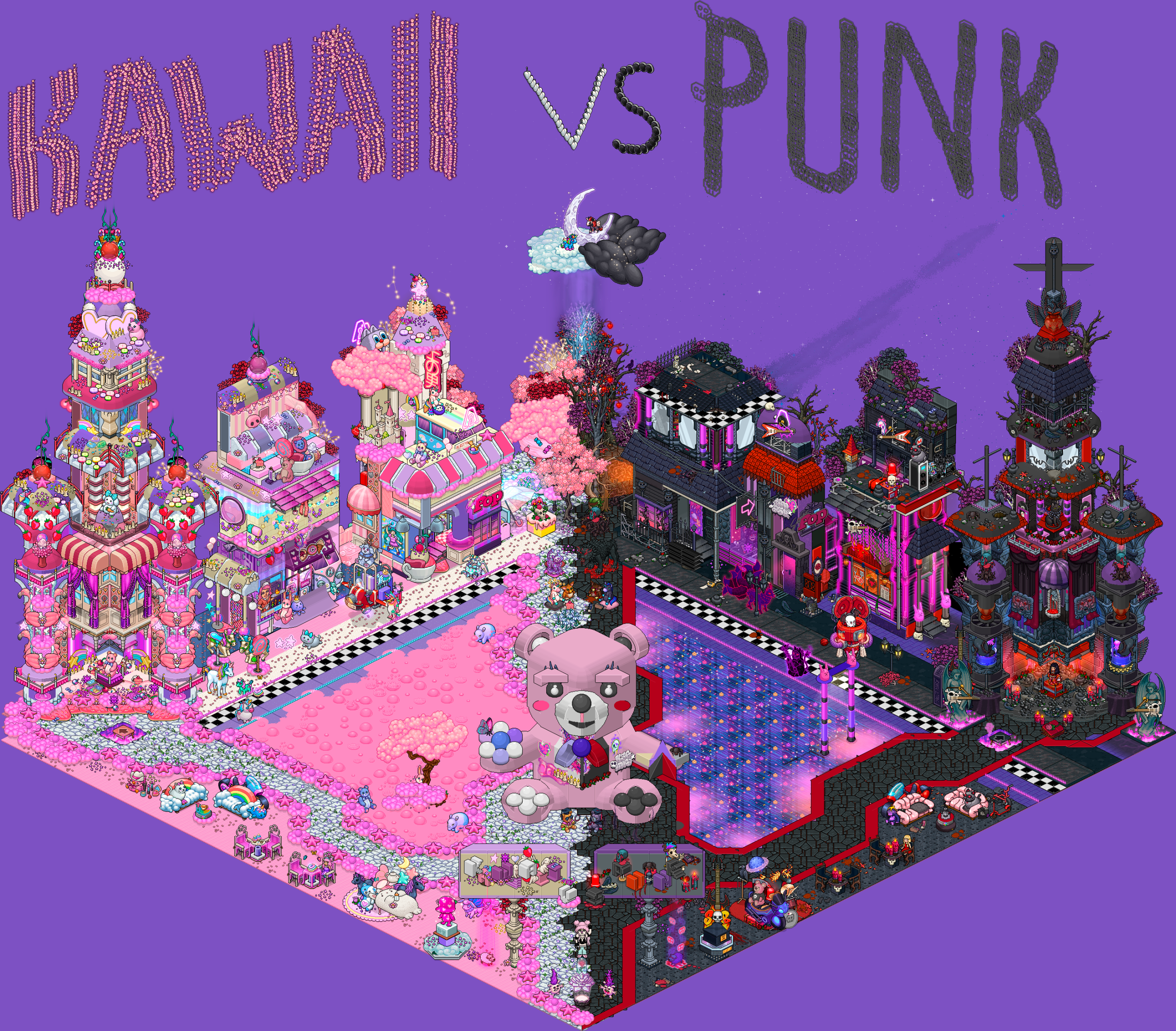 Color rosa pastel para la zona kawaii y lila oscuro para la zona punk.