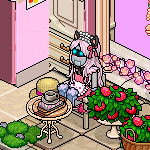 Una vez con la tinta, siéntate en los pods y da clic al expositor del centro del Osito Punk para desplazarte aleatoriamente hasta llegar a las rosas.