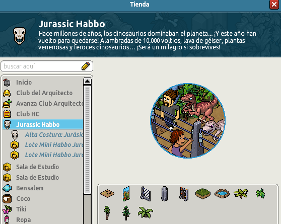 Un magnífico lote llamado «Mini Habbo Jurásico» ya está disponible y tiene el mismo precio de siempre: 39 créditos y 39 diamantes o 99 créditos. También incluye una magnífica placa: