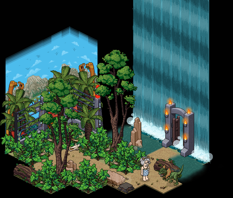 Después de toda una semana de espera, hoy finalmente llegó el evento Jurásico. Para dar inicio a esta gran campaña el catálogo se ha llenado con nuevos furnis, nueva ropa e incluso un lote de sala. Además la vista del hotel también cambió, y muchos usuarios ya han empezado a usar la nueva ropa, por lo que habbo parece que ha retrocedido unos 200 mil años.