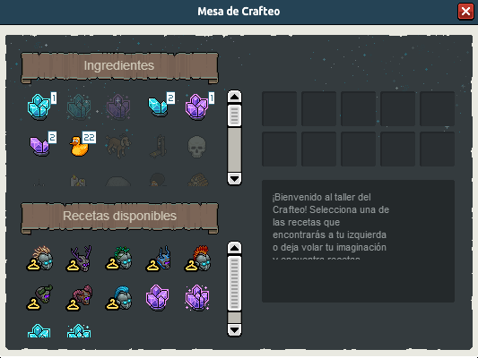 Crafteo oculto 12: Pato afro + Esqueleto + Esqueleto + Esqueleto + Cristal mediano puro = Muñeco Dandi