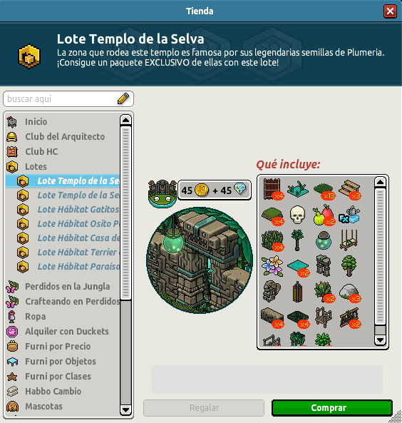 Ayer Habbo nos sorprendió con una noticia y es que ya ha sido habilitado el primer lote de esta campaña jungla. Como veremos en la siguientes imágenes, este lote podremos adquirirlo por un precio asequible. Sin más dilación pasemos a ver el lote.