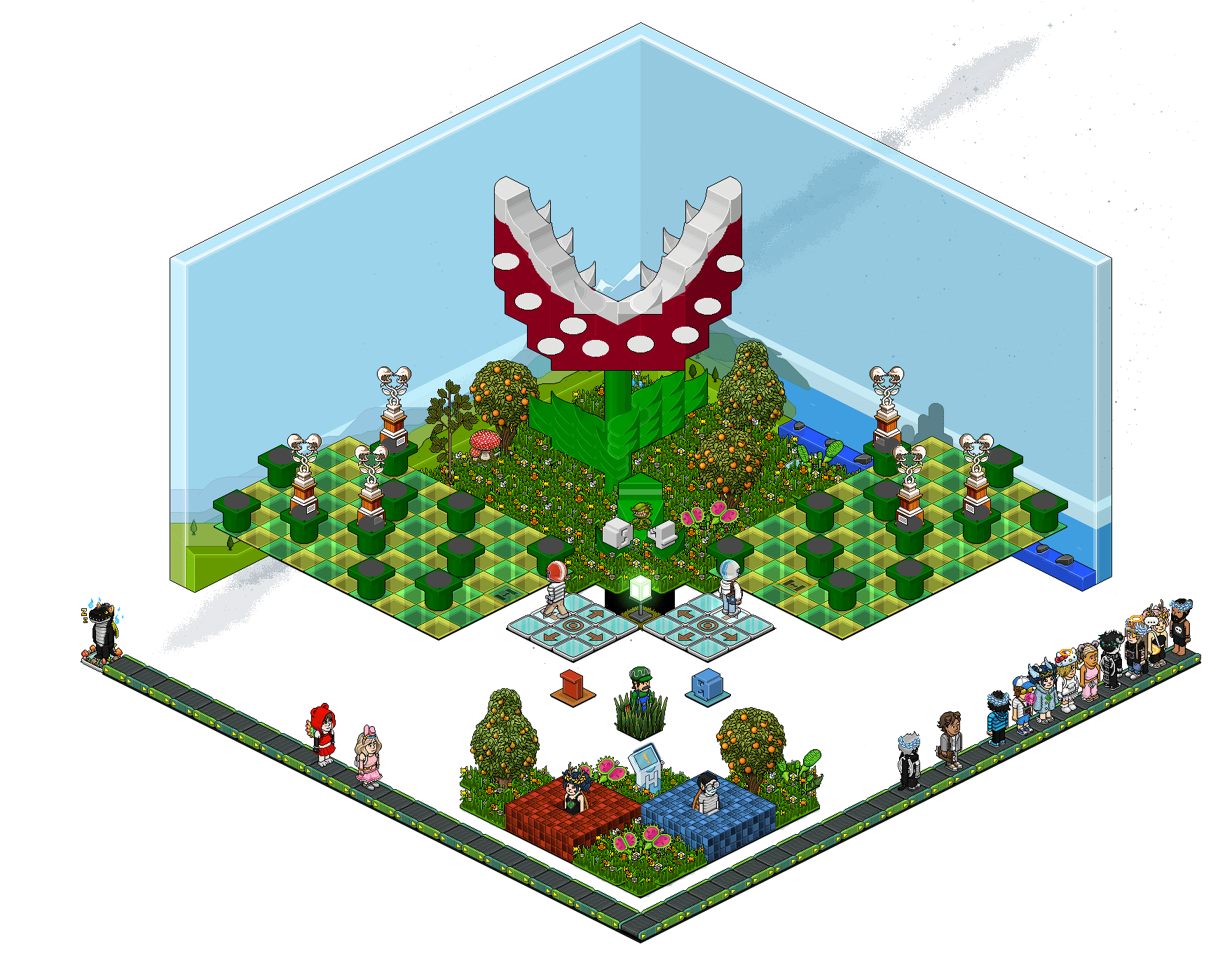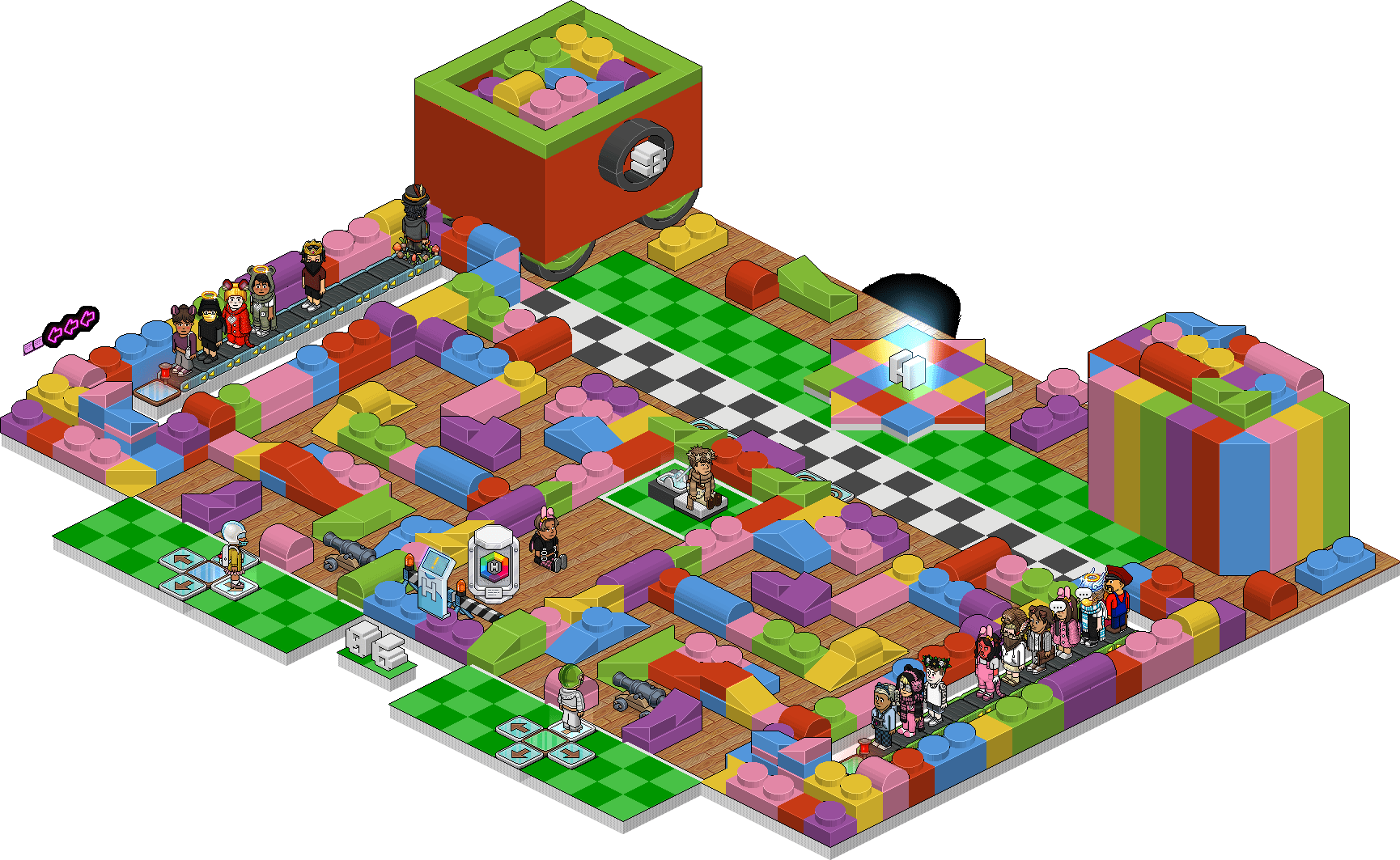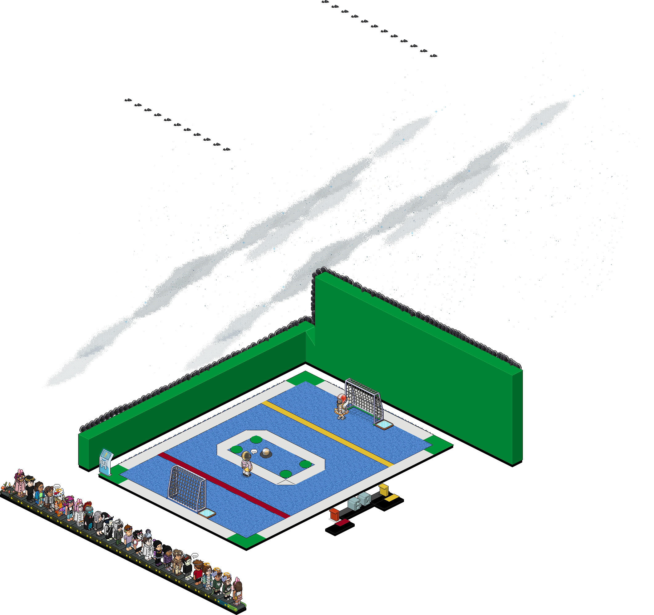 Se esconderá en alguna sala de todo el habbo hotel, ¿Cómo lo encontrarás? En dicho twitter se publicarán pistas de donde se encuentra y las 4 primeras personasque lo rodeen ganarán (Ganas si estas parado a lado del keko donde marca la imagen en las casillas verdes, casillas rojas NO ganas), se les anotará el nombre y deberán mandar petición al siguiente grupo: