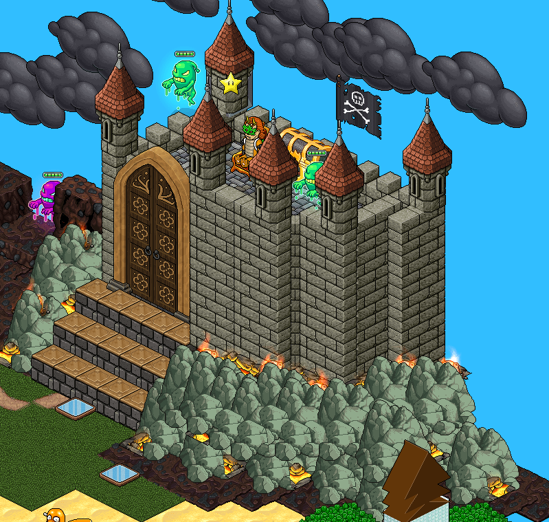Para poder entrar al castillo de bowser y poder ganar la placa “Estrella” deberás tener puestas cinco placas en tu perfil. (Las placas se indiciarán en el momento de la apertura del juego). Una vez tengas estas cinco placas en tu perfil, deberás colocarte sobre la casilla de color azul que hay frente al “castillo de bowser”. Acto seguido, cuando la “Puerta grande de la fortaleza” esté abierta, deberás decir: “Bowser” y te teletransportará a lado del port: