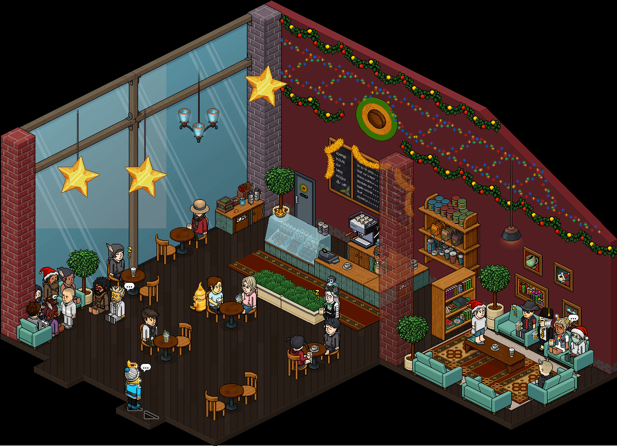 Como todos ya sabéis, la Navidad se ha apoderado de Habbo y nos ha dejado una bonita estampa en una sala pública, además del Recibidor. Dicha sala pública se trata de la tan famosa Cafetería. A continuación os vamos a dejar una imagen de dicho diseño: