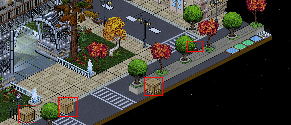 Camina sobre las baldosas de color y utiliza las palancas necesarias para apagar las luces de la ciudad. En las posiciones que hay cajas haz doble clic sobre estas, para que las palancas aparezcan. No te salgas de las baldosas o serás teletransportado de vuelta al inicio.