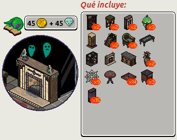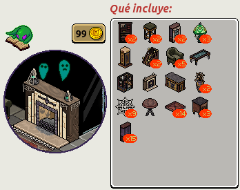 Te hablamos, sin lugar a dudas, del Lote Hotel Encantado —un lote que ya salió anteriormente—. Este lote contiene el furni exclusivo Chimenea Encantada y muchos otros pertenecientes a a la línea de Cazadores de Fantasmas. No olvides que estará disponible por tiempo limitado. Sin nada más que decir, te dejamos con las imágenes: