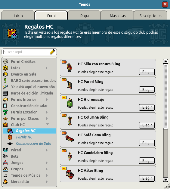 Un día más estamos aquí, y Habbo para que no nos aburramos saca en venta los nuevos lotes, placas, juegos, etc… a la luz. Pero hoy le ha tocado el momento a los miembros del Club HC, ya que han puesto en catálogo los nuevos regalos HC.