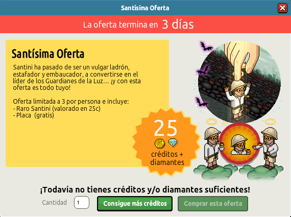 Pasando por los oscuros lugares de Habbo nos hemos encontrado una nueva oferta disponible durante 3 días por 25 créditos y 25 diamantes.