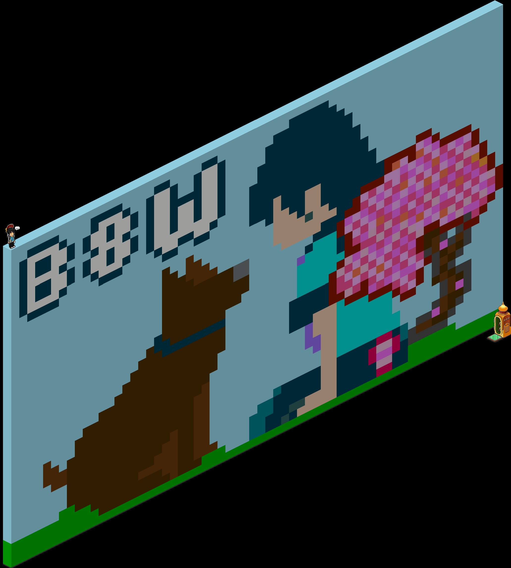 Para recibir la placa que dan tendrás que acceder a la sala #B8W – PIXEL ART de Nourent y decir en ella: mosaico pixelado. Hecho esto podrás recoger tu placa y tener un reconocimiento por el Píxel Art.