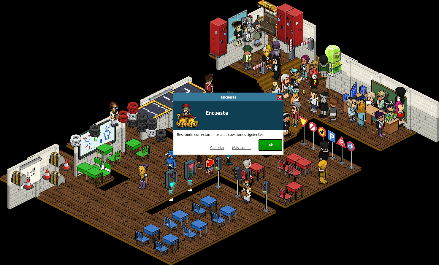 El primer juego de los seis es un quiz de 10 preguntas sobre coches para poner a prueba tu capacidad mental. Pero no te preocupes porque aquí te dejamos las respuestas. Para acceder al quiz debes ingresar a la sala Habbo Motor – Entrada Escuela de Conducción de QxHurricane y pasar por los teleports que están señalados.