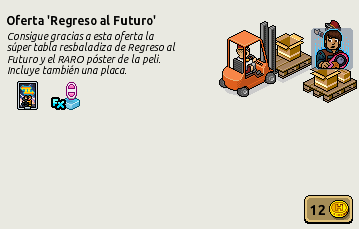 Habbo está siempre al día de todo. Hoy, una nueva oferta ha salido en honor a la famosa película: Regreso al Futuro. Dicha oferta incluye un efecto permanente, un póster de la película y una placa exclusiva:
