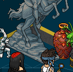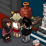 Combinación 2 (bots de la izquierda): colócate delante de los furnis El pensador, Venus de Habbo y Estatua Héroe y escribe ‘Examinar‘ delante de cada uno de ellos.