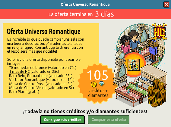 ¿Qué te parece la oferta? ¿Muy cara? ¿La comprarás? HabboTemplarios te informa de todas las novedades. ¡Sigue atento y no te despegues ni un momento de la web! No olvides dejar un comentario.