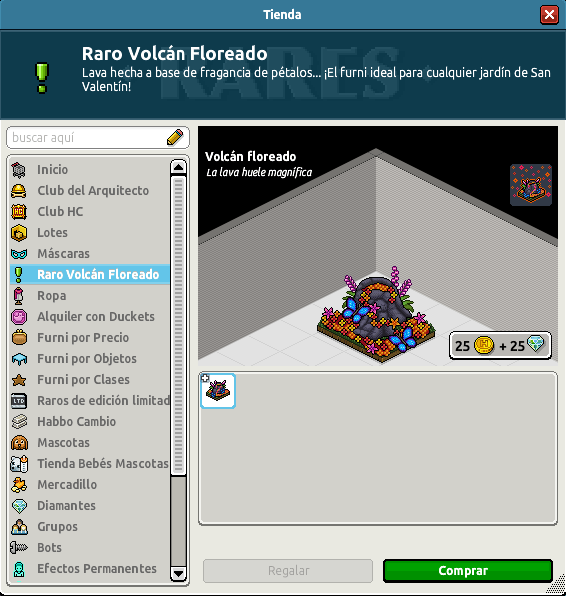 Los furnis siguen apareciendo en Habbo por el Carnaval. Recordemos que son varios los furnis y lotes que han ido saliendo en el transcurso de estos días atrás. Si has puesto la vista en la página principal de Habbo, habrás visto anunciado un nuevo rare en el catálogo. En efecto, ese rare se llama Volcán floreado y recibiremos además una placa por su compra.