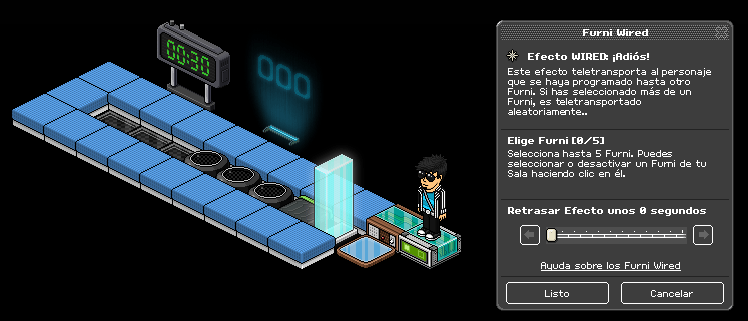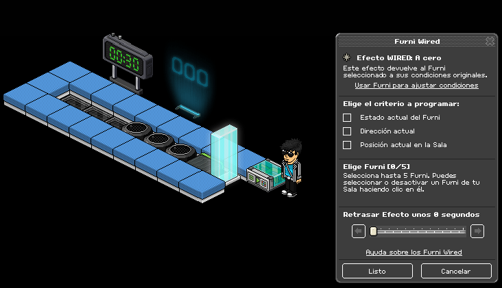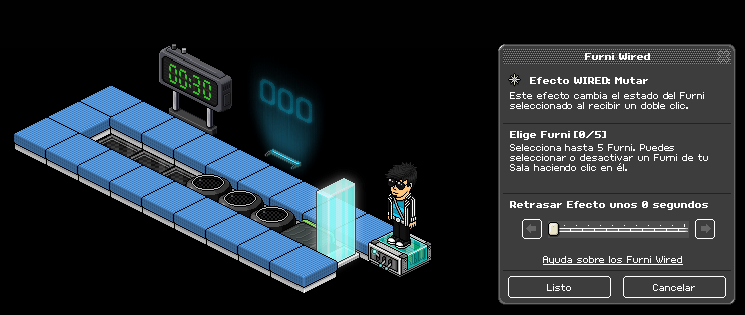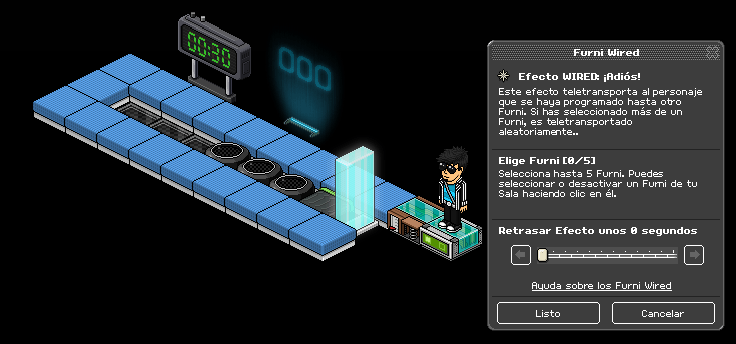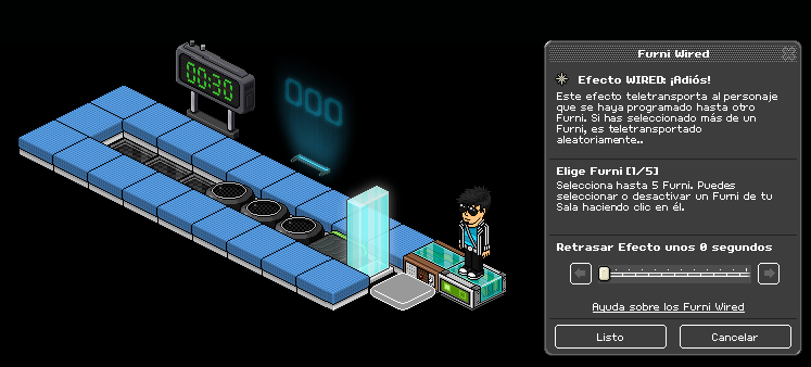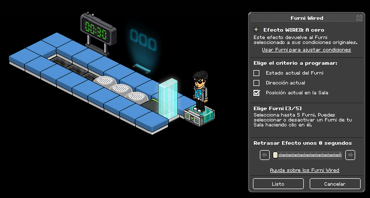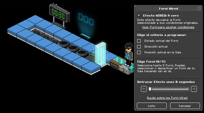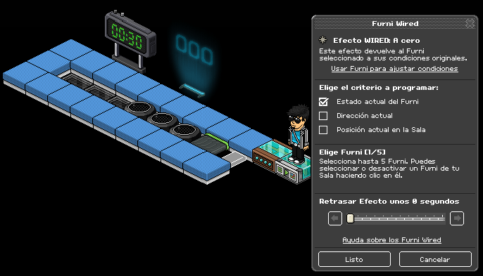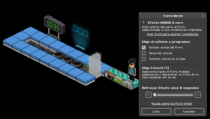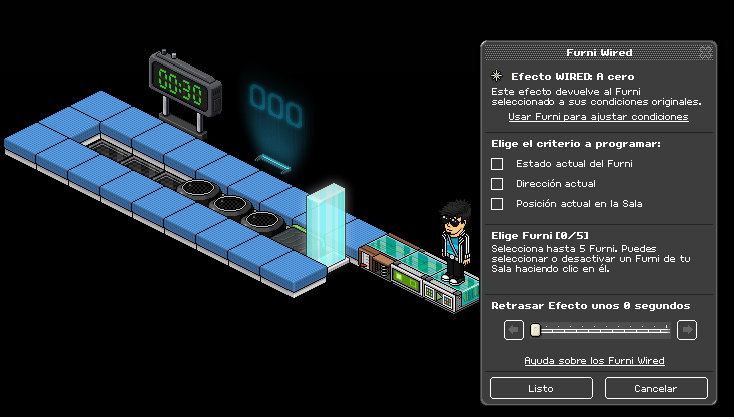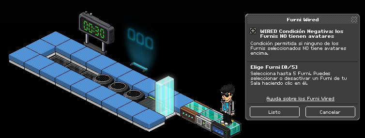 Paso 1: Cogemos el causante wired: sobre un furni y seleccionamos los coloreadores banzai y la primera casilla banzai.