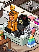 »Mi furni favorito es el Libro Naranja, si bien estéticamente no es demasiado lindo me encanta el color obviamente jaja, y su exclusividad. Además me trae recuerdos a los concursos antiguos de Habbo y siempre quise uno. Tuve la oportunidad de comprarlo pero finalmente lo vendí. ¡Espero poder comprar uno pronto! Son difíciles de conseguir…» comentó.
