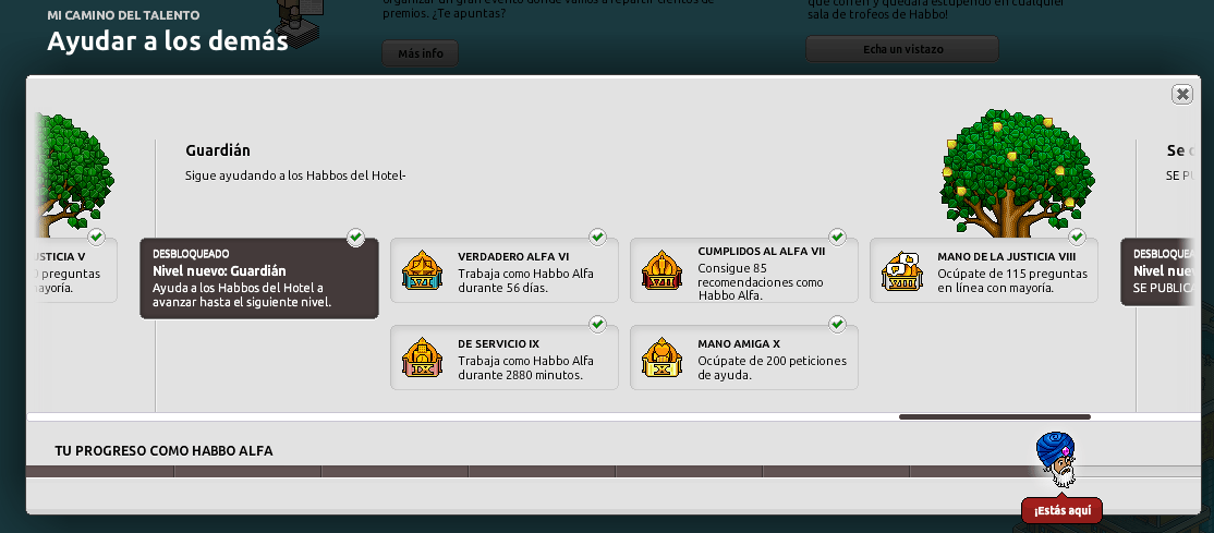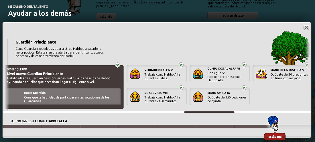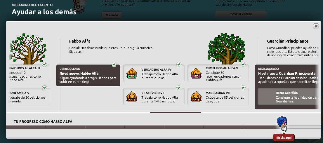 Habilidades del Habbo Alfa está basado en cumplir los retos que se te piden para así seguir avanzando como Alfa o Guardián