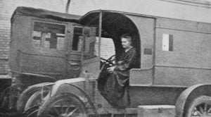 Durante la primera guerra mundial, recorrerá el frente con un grupo de veinte ambulancias dotadas de equipo radiográfico para localizar los fragmentos metálicos en los heridos, asistida por su hija Irene. Labor que nuevamente por su condición de mujer no fue reconocida por el gobierno Frances y la cual lo sería tiempo después.