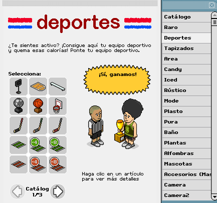 [HHO] En venta: Furnis Deportivos Hace 2 años Dantempo 8 Popular Archivada Información de la publicación Publicada: 18/07/2024 13:29:52 H.P.E. Autor: Dantempo Último comentario:Diego Ir Visitas: 394 Información general Campaña: Habbo Historia Categoría: Deportes Tipo: Furni normal Precio: Entre 3 y 15 Fecha de inicio de venta: 18/07/2024 Fecha de final de venta: Indeterminada Lugar de venta: Tienda Imagen de los ítems y catálogo