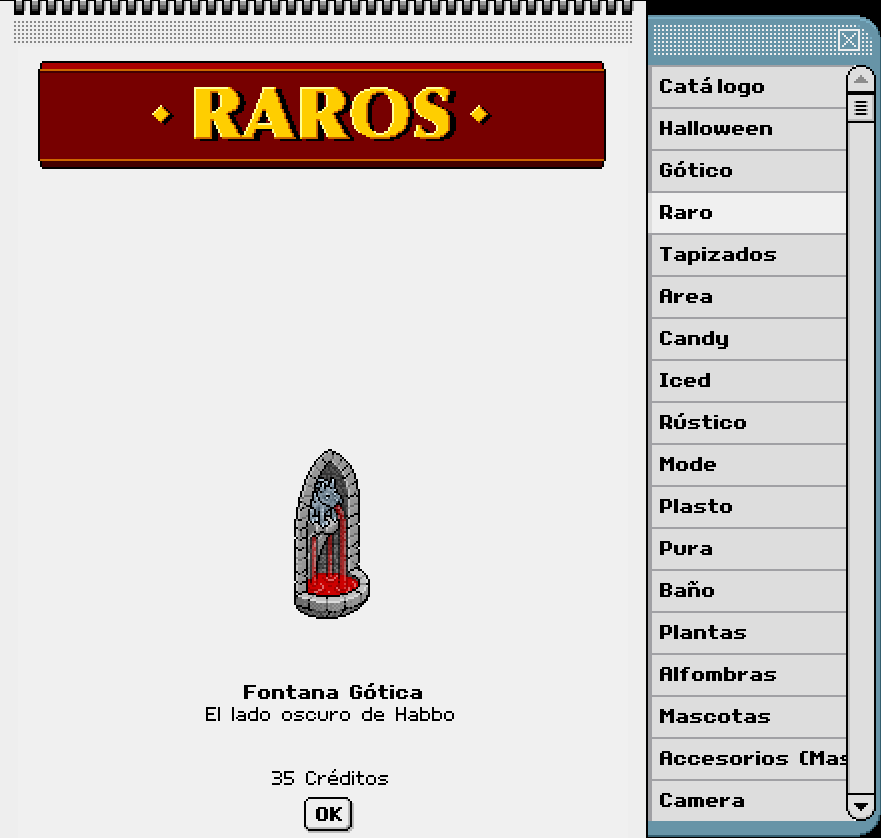 [HHO] En venta: RARO Fontana Gótica Hace 2 años Kyovyan 9 Popular Archivada Información de la publicación Publicada: 15/10/2024 13:22:23 H.P.E. Autor: Kyovyan Último comentario:@ngelytox Ir Visitas: 327 Información general Campaña: Habboween Categoría: Furni Nombre: Fontana Gótica Precio: 35 Fecha de inicio de venta: 15/10/2024 Fecha de final de venta: 17/10/2024 Lugar de venta: Tienda Imágenes del ítem y de catálogo