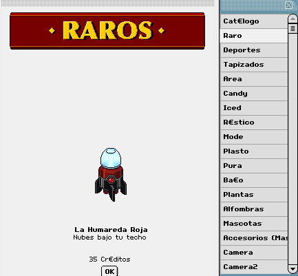 Campaña: Habbo Historia Categoría: Furni Nombre: Humareda Roja Precio: 35 Fecha de inicio de venta: 23/07/2024 Fecha de final de venta: 30/07/2024 Lugar de venta: Tienda