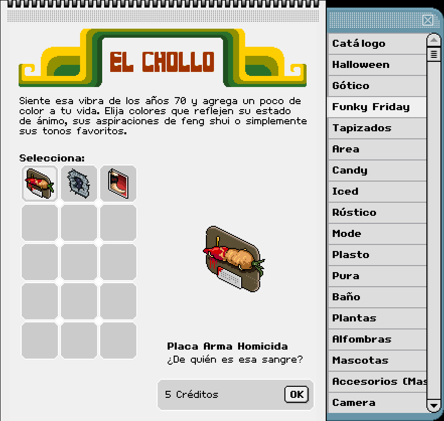 [HHO] En venta: Zanahoria Ensangrentada, Muro Roto Nocturno y Póster Tenebroso Hace 2 años Agathys 8 Popular Archivada Información de la publicación Publicada: 18/10/2024 12:59:28 H.P.E. Autor: Agathys Último comentario:@ngelytox Ir Visitas: 223 Información general Campaña: HabboWeen 2024 Categoría: Funky Friday Tipo: Furni normal Precio: 5 Fecha de inicio de venta: 18/10/2024 Fecha de final de venta: 19/10/2024 Lugar de venta: Tienda Imagen del ítem / de los ítems y catálogo / habbo compras