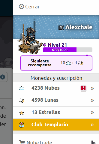 Cuando visites un perfil de otro usuario podrás regalarle rayos (a cambio de nubes) para que incremente su contador y los dos puedan obtener recompensas.