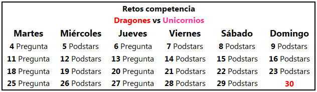 - Como puedes ver, cada semana habrá 2 preguntas y 4 días de Podstars, pero… ¿qué es eso?