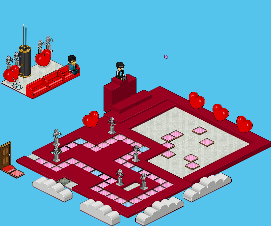 1. Avanza por el camino cuando los cupidos te estén observando hasta pisar la puerta de cristal.