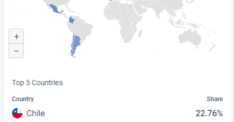 Pasando a las estadísticas propiamente dichas, tenemos que destacar el pico de visitas alcanzado en el mes de marzo: 2.27 millones de visitas. En lo que a geografía se refiere, cabe mencionar el porcentaje de usuarios representado por cada hotel: 22.76% por Chile, 14.81% por España, 12.78% por Colombia, 11.21% por México y 8.12% por Argentina. ¡Te mostramos los gráficos a continuuación!