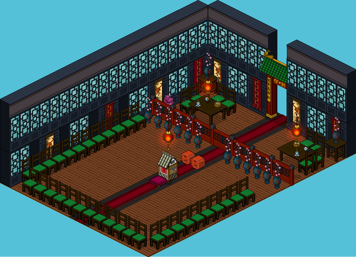 El juego constará de 20 rondas y consiste en pasar al terreno de juego para sentarse en el sitio que se quiera (sin ser el almohadón). Cuando se ordene, tendréis que sentaros en orden en el almohadón y sacar un té. Si el wired es benévolo contigo te dejará sentarte de nuevo. Por el contrario, si no le causas buena impresión te echará del juego. Tienes 50% de probabilidad de seguir jugando y 50% de probabilidad de perder.