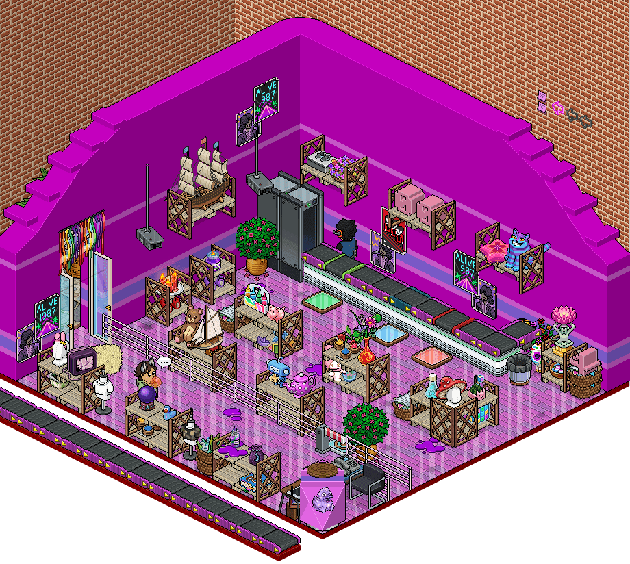 Pisa las casillas amarillas que van apareciendo por la sala para añadir un ingrediente a la cinta de rollers.