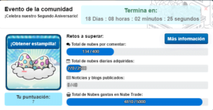 Se deberán tener un total de 400 nubes por comentar. (estas se obtienen por comentar nuestras entradas, noticias o post).